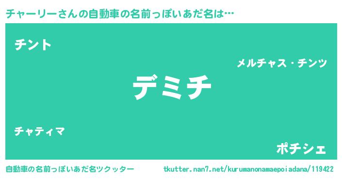 | 男性向けラノベタイトル風あだ名 | 『チャーリーという概念が存在しない退屈な世界 』 |