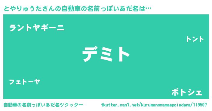 | 男性向けラノベタイトル風あだ名 | 『とやりゅうたという概念が存在しない退屈な世界 』 |