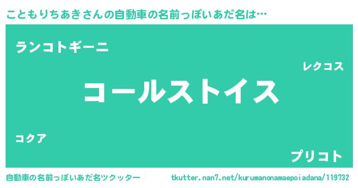 | ヒーロー風カッコイイあだ名 | 『スーパーコトモリチアキ』 |