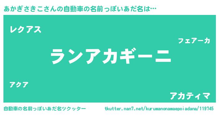 | 欧米人風あだ名 | 『アンジェラ・あかぎさきこ』 |