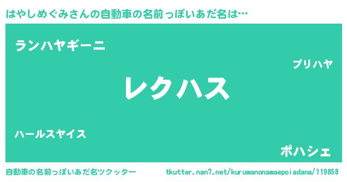 | 意味不明あだ名 | 『自称はやしめぐみ』 |