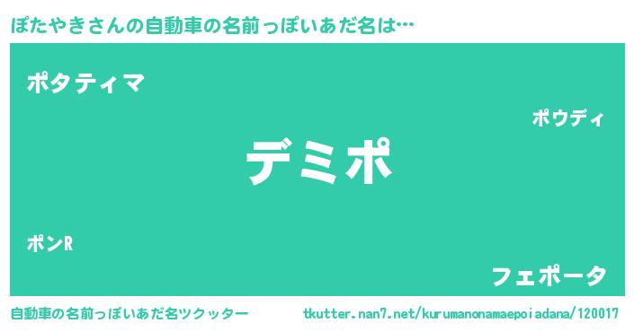| 男性向けラノベタイトル風あだ名 | 『ぽたやきという概念が存在しない退屈な世界 』 |