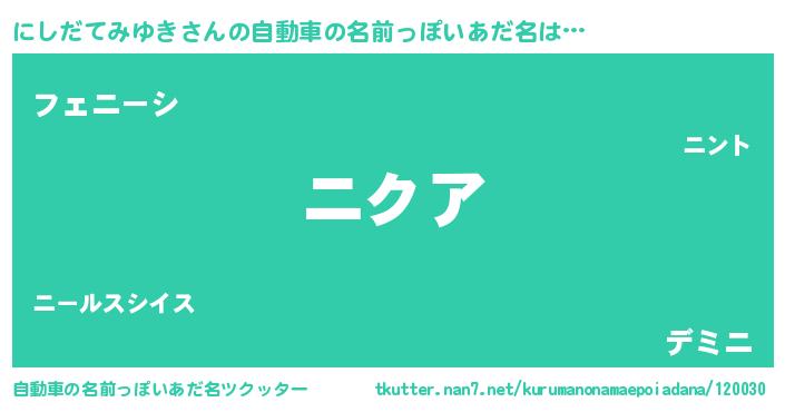 | 肩書あだ名 | 『にしだてみゆき大統領』 |