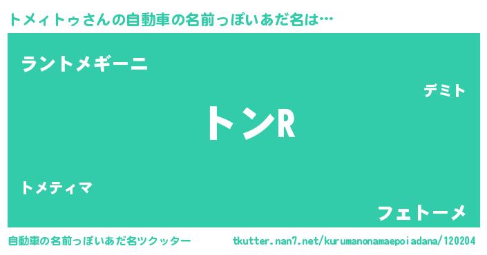 | 欧米人風あだ名 | 『ダニエルトメィトゥ』 |