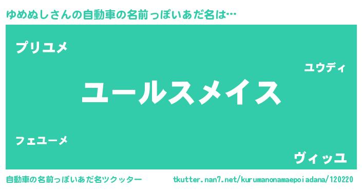 ゆめぬしさんの自動車の名前っぽいあだ名をツクッター!
