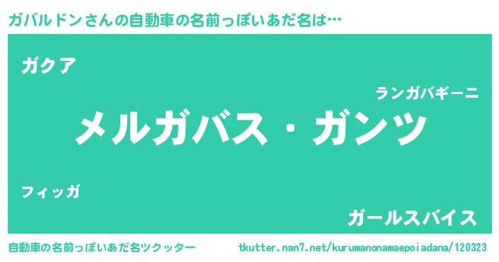 | 男性向けラノベタイトル風あだ名 | 『Re:ガバルドンから始める異世界生活』 |