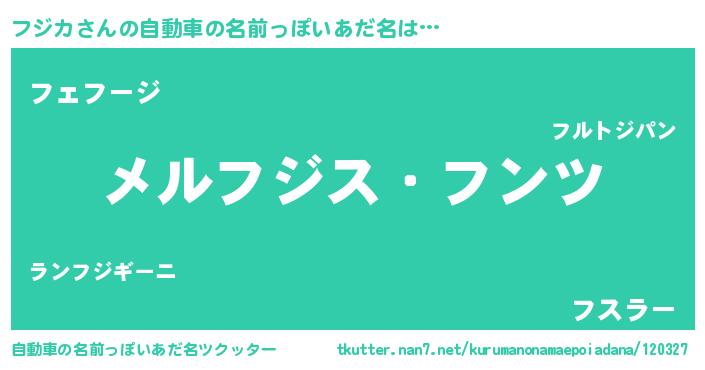 | 男性向けラノベタイトル風あだ名 | 『Re:フジカから始める異世界生活』 |