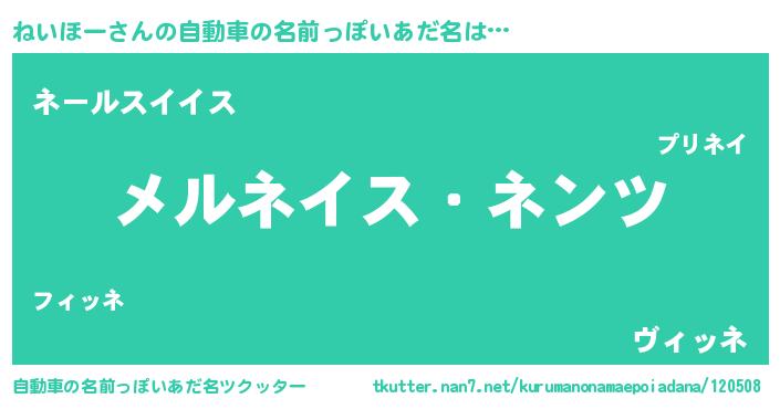 | ヘコむあだ名 | 『ねいほー(遠い目)』『ねいもー』 |