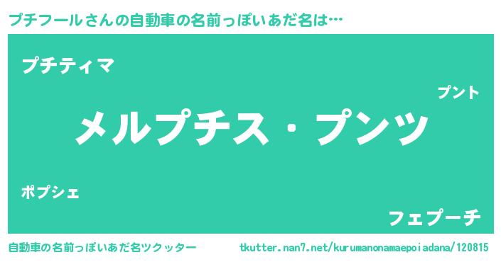 | 意味不明あだ名 | 『自称プチフール』『ペロリンプチフール』 |