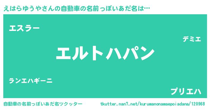 | 欧米人風あだ名 | 『ウサインえはらゆうや』 |