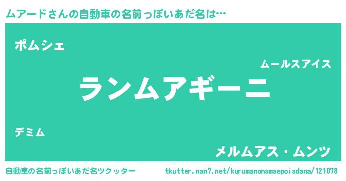 | 意味不明あだ名 | 『住所不定無職ムアード(86歳)』 |