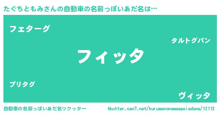 | ヘコむあだ名 | 『たぐちともみ(苦笑)』『たぐお』 |