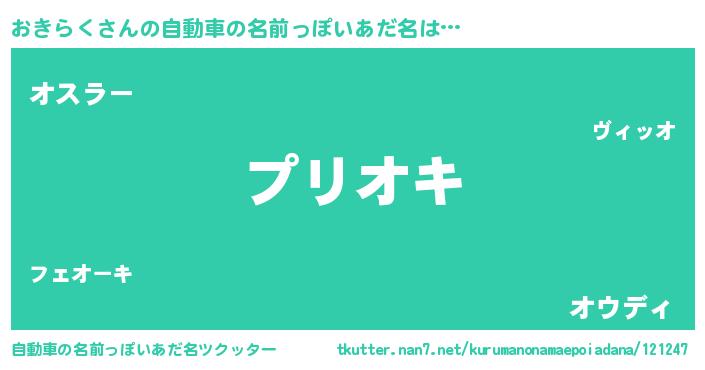 | 男性向けラノベタイトル風あだ名 | 『おきらくの憂鬱』『魔弾の王とおきらく』 |