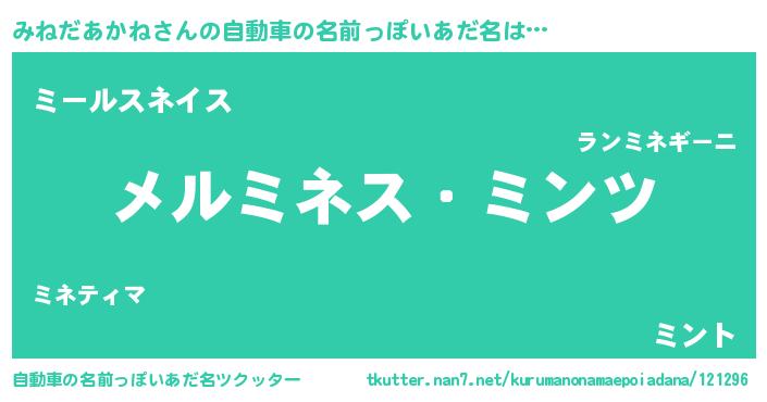 | 男性向けラノベタイトル風あだ名 | 『Re:みねだあかねから始める異世界生活』 |