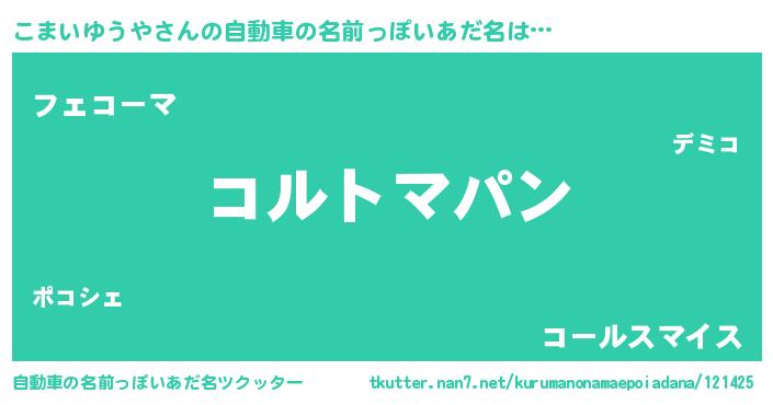 | 胡散臭い通販商品みたいなあだ名 | 『信頼と実績のサプリメント…その名も「こまいゆうや」』 |