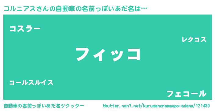 | 男性向けラノベタイトル風あだ名 | 『おまえをオタクにしてやるから、俺をコルニアスにしてくれ! 』 |