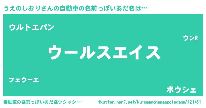 | 男性向けラノベタイトル風あだ名 | 『ウエノシオリスレイヤー』 |