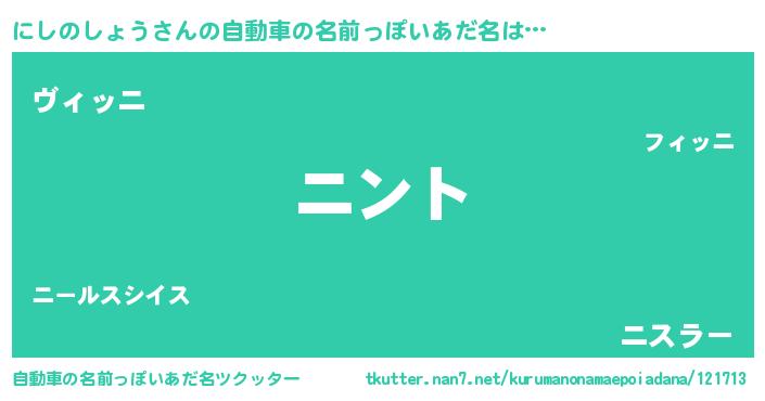 | 男性向けラノベタイトル風あだ名 | 『にしのしょうの嫁は女の子じゃないと思った?』 |