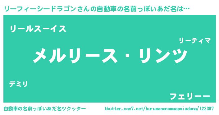 | 男性向けラノベタイトル風あだ名 | 『Re:リーフィーシードラゴンから始める異世界生活』 |