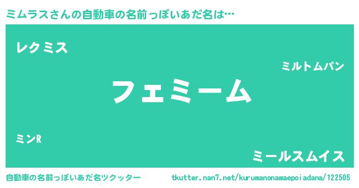| 男性向けラノベタイトル風あだ名 | 『緋弾のミムラス』『ミムラススレイヤー』 |
