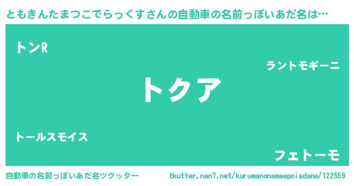 | 欧米人風あだ名 | 『ともきんたまつこでらっくすクリステル』 |