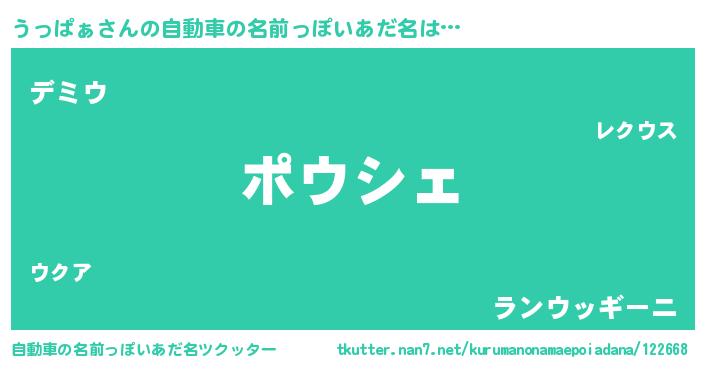 | 男性向けラノベタイトル風あだ名 | 『この素晴らしい世界にうっぱぁを!』 |