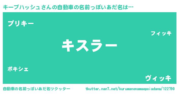 | 欧米人風あだ名 | 『キープハッシュクリステル』 |