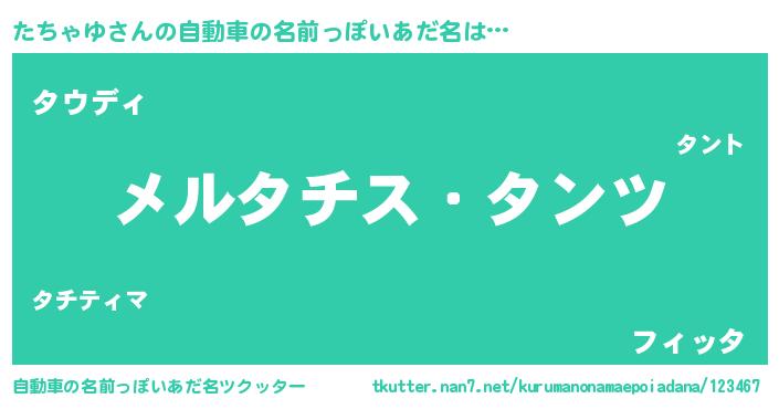 | 男性向けラノベタイトル風あだ名 | 『Re:たちゃゆから始める異世界生活』 |