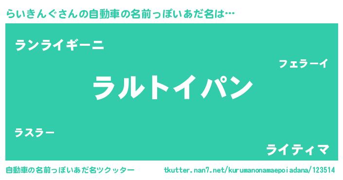 | 意味不明あだ名 | 『とにかく怪しいらいきんぐ』 |