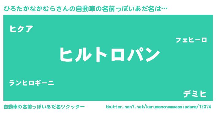| ポケモン風あだ名 | 『ヒヒロタカナカムラ』『ヒロタダネ』 |