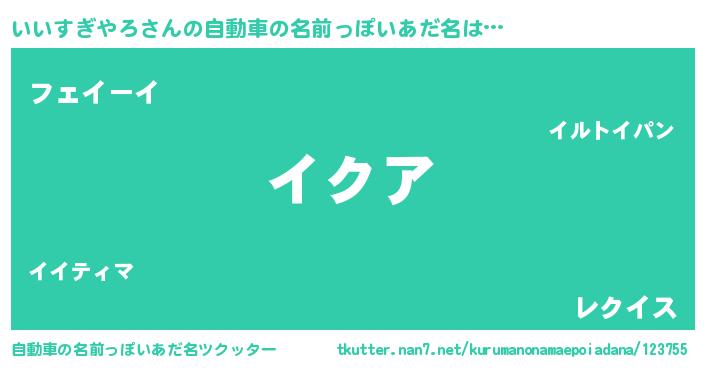 いいすぎやろさんの自動車の名前っぽいあだ名をツクッター!