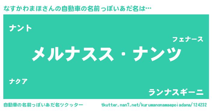 | 欧米人風あだ名 | 『ケンブリッジなすかわまほ』 |