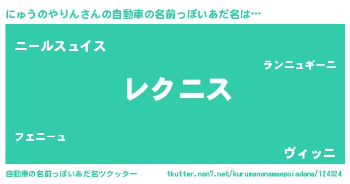 | 意味不明あだ名 | 『自称にゅうのやりん』 |