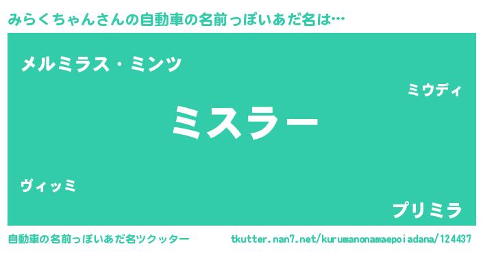 | 欧米人風あだ名 | 『みらくちゃんクリステル』 |