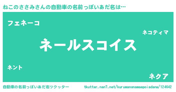 | 欧米人風あだ名 | 『トリンドルねこのささみ』 |