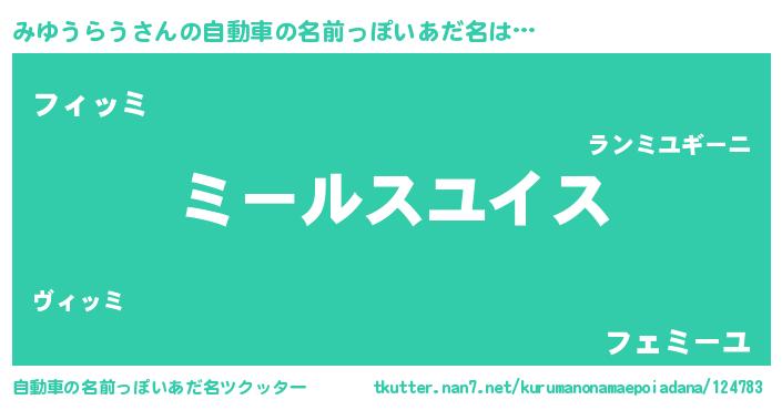 | ヒーロー風カッコイイあだ名 | 『正義の使者みゆうらう』『幻影騎士ミユ』 |