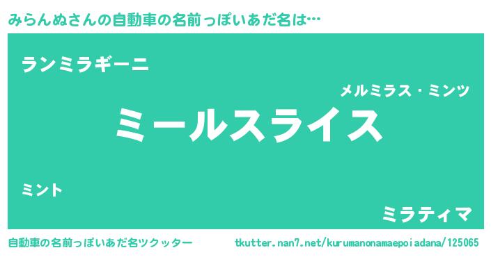 | 胡散臭い通販商品みたいなあだ名 | 『億万長者になれるブレスレット…その名も「みらんぬ」』 |