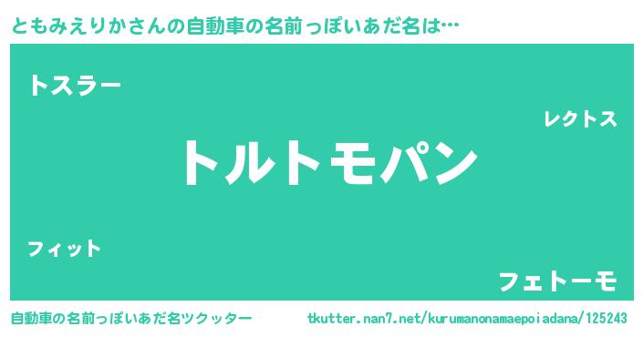 | ポケモン風あだ名 | 『ヒトモミエリカ』『トモミダネ』 |