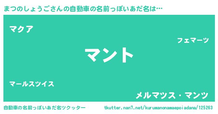 | 意味不明あだ名 | 『とにかく怪しいまつのしょうご』 |