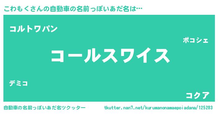 | 男性向けラノベタイトル風あだ名 | 『転生したらこわもくだった件』 |