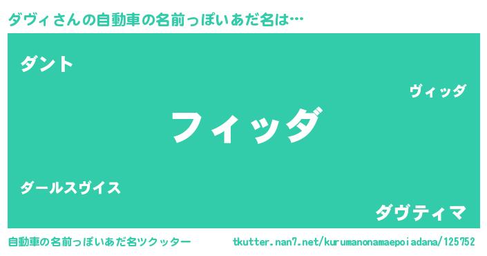 ダヴィさんの自動車の名前っぽいあだ名は… 『フィッダ』『ダント』『ダヴティマ』 ツクッター #自動車の名前っぽいあだ名ツクッター http://tkutter.nan7.net/kurumanonamaepoiadana/125752/