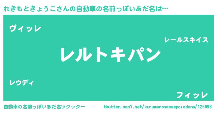 | ヒーロー風カッコイイあだ名 | 『銀牙騎士レキ』『ネオレキモトキョウコ』 |