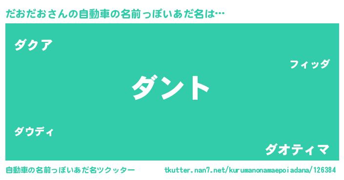 | 男性向けラノベタイトル風あだ名 | 『だおだおの嫁は女の子じゃないと思った?』 |
