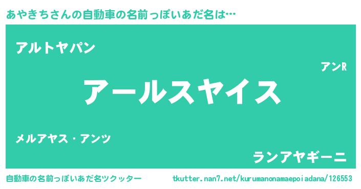 | 男性向けラノベタイトル風あだ名 | 『アヤキチスレイヤー』 |