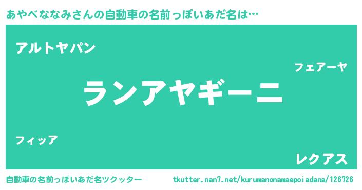 | 意味不明あだ名 | 『とにかく怪しいあやべななみ』 |