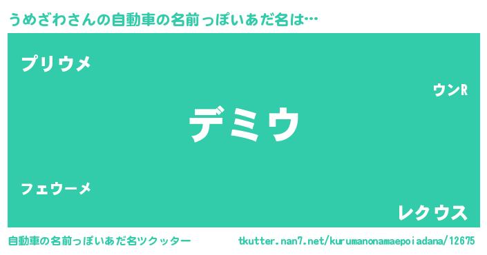 | 男性向けラノベタイトル風あだ名 | 『うめざわという概念が存在しない退屈な世界 』 |
