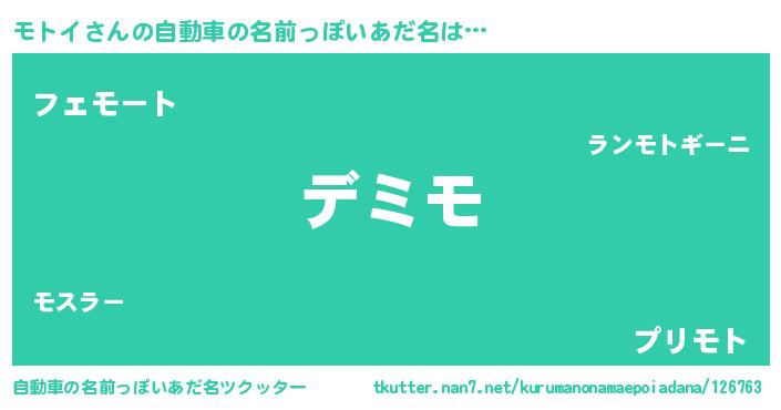 | ファンタジー風あだ名 | 『モトディッシュ』『カークモトラー』 |