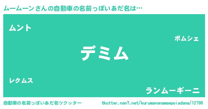 | 男性向けラノベタイトル風あだ名 | 『ムームーンという概念が存在しない退屈な世界 』 |