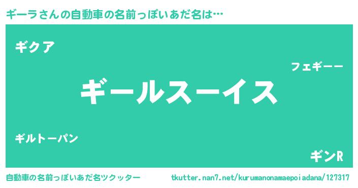 | 女子向けラノベタイトル風あだ名 | 『ギーラの玉の輿計画!』『ギーラ恋絵巻』 |