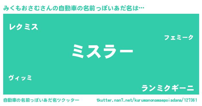 | 欧米人風あだ名 | 『みくもおさむクリステル』 |